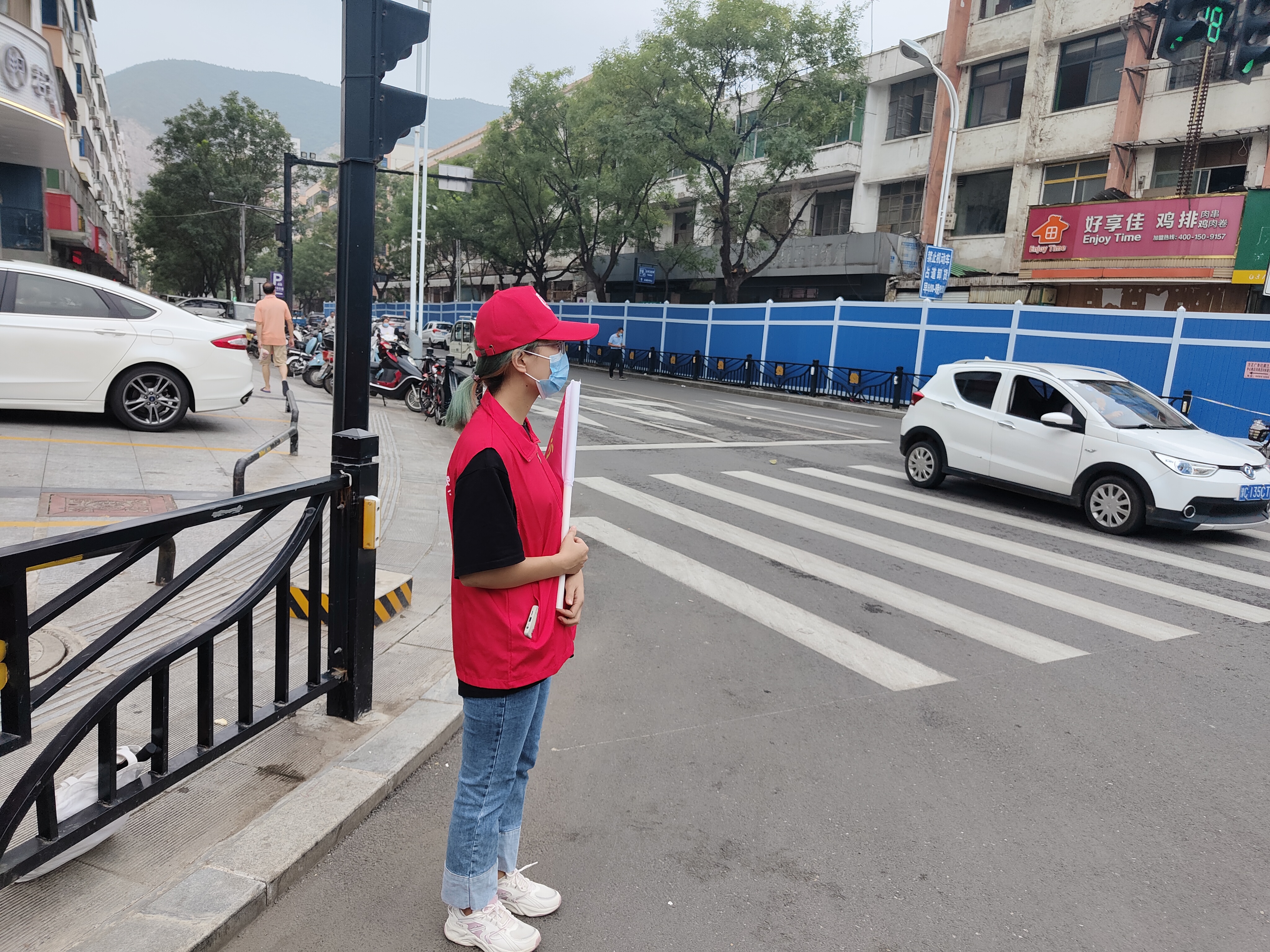 8月20日-21日,黃河同力組織干部職工前往宜陽縣人民路與紅旗路口,進(jìn)行疫情防控勸導(dǎo)志愿服務(wù)活動(dòng)。在活動(dòng)中,黃河同力志愿服務(wù)隊(duì)的志愿者們頭戴小紅帽,身穿志愿服,手拿小紅旗,勸導(dǎo)群眾佩戴口罩,引導(dǎo)群眾注意排隊(duì)距離,并向沒帶口罩的群眾發(fā)放口罩。